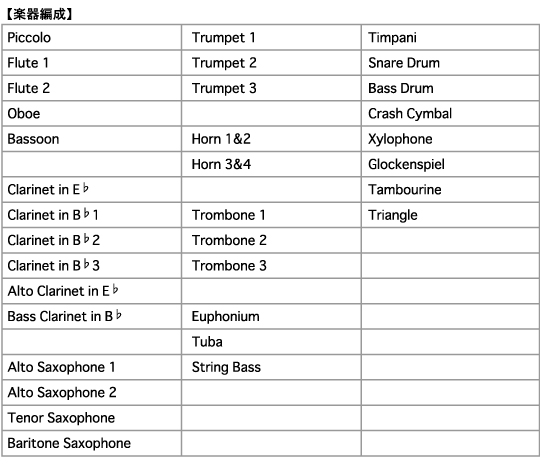 それぞれの楽器の魅力を十分アピールでき、爽やかな中にも温かさのあるコンサートマーチに仕上げました。また、馴染みやすく聴きやすいフレーズは、コンサートのオープニング曲にもお薦めです。